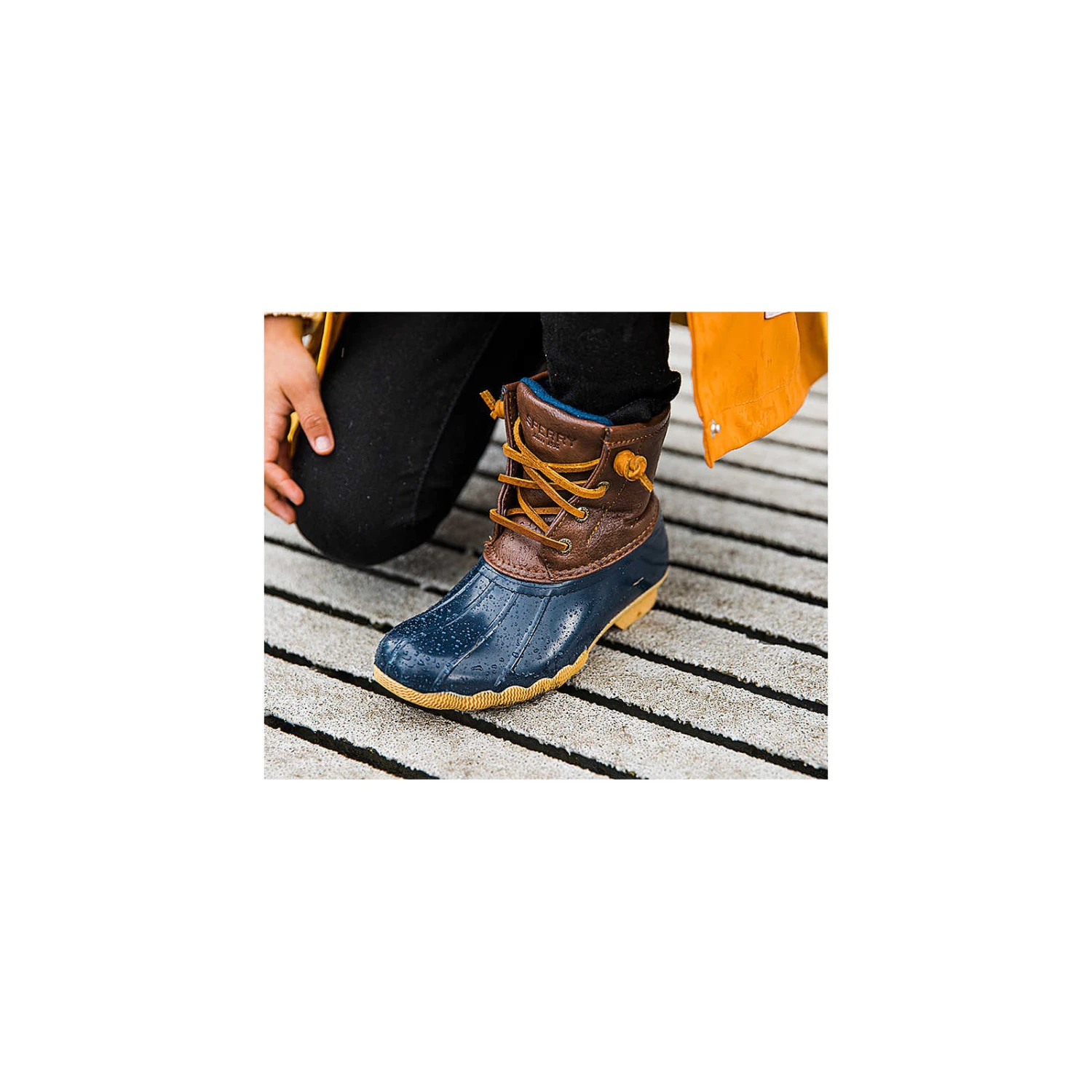 Calling all puddle-jumpers! Sperry’s Saltwater Boot looks just like Mom’s but designed especially for kids. A convenient side zipper makes it easy for on and off while fixed barrel lacing adds the perfect touch of detail.