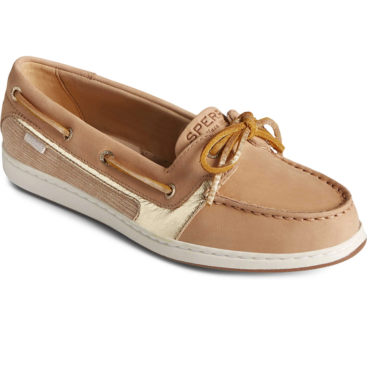 A lower profile with a single eyelet elevates this more streamlined take on the iconic Sperry boat shoe. Rawhide laces completes its classic look, and the combination of a hand-sewn moccasin construction and a shock-absorbing heel cup guarantee all-day comfort.